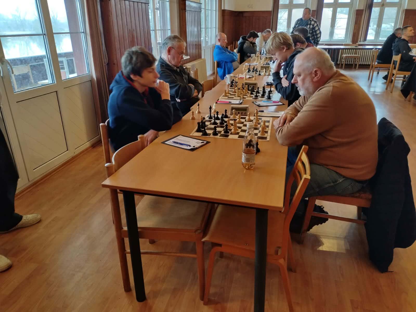 V neděli 1.3. jsme zavítali na nebezpečnou půdu rezervy prvoligových Litoměřic. Čekal nás tým, který bojuje o přední příčky krajského přeboru. Nečekalo nás nic lehkého. Náš tým odjížděl bez svých prvních dvou hráčů, ale minimálně na začátku to nebylo znát. Všichni bojovali jak lvi. První skončila remízou partie mladého Patrika Janouše s předsedou Ústeckého šachového svazu Františkem Chaloupkou, kdy pozice byla zablokovaná s ne-stejnobarevnými střelci. Úspěch pro našeho talenta. Další remízu přinesla třetí šachovnice, když Kamil Balín se Šurou nenašli další pokračování a museli se spokojit s dělbou bodů. Zápas v tu chvíli vypadal velmi vyrovnaně, nicméně během hodiny se ukázala zkušenost Litoměřických forwardů. Následovaly v rychlém sledu prohry Míry Picherta, Míry Srkala i Jirky Korsy. Mírové podlehly agresivní hře talentovaných bratrů Augustýnů, když se oba pustili do našich zkušených hráčů bez ostychu. Jirka Korsa nezvládl složitou koncovku proti dvojici střelců a bylo po zápase. Vítězství pro domácí zajistil remízou Prný s naším Vláďou Hruškou. Nutno podotknout, že Vláda měl velmi blízko k vítězství, ale nezvládl lepší koncovku s pěšcem více. Po 4,5 hodinách hry už dohrávali jen první dvě šachovnice. Jindra Korsa po divokém průběhu s Hulou přešel do horší koncovky, kterou se mu nepodařilo udržet. Jako poslední dohrál po pěti hodinách Dan Balín, který utrpěl svou první porážku v sezóně. Po devátém kole držíme na skóre desáté místo. Za tři týdny nás čeká klíčový souboj o udržení a to na domácí půdě proti Chess Most. Zkusíme zabojovat o účast v následném ročníku krajského přeboru. Držte nám palce a přijďte nás podpořit.